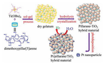 Pillararenes are a new type of macrocyclic compounds, and they have received extensive attention due to their typical columnar rigid structure and unique physical and chemical properties [13, 14]. They have been employed as supramolecular hosts in a variety of applications, such as drug delivery, catalysis, separation processes and sensors [15-25]. However, it has been rarely applied in photocatalytic hydrogen production. We envisioned that the most common and easily synthesized p-dimethoxy pillar[5]arene (PI-OMe) [26] would be an ideal candidate to modify TiO2 for robust photocatalytic H2 production. First, the rigid and symmetrical pillar structure of the PI-OMe could improve the stability of the hybrid system. In addition, PI-OMe has a three-dimensional pillar cavity with rich electrons and could work as an electron transfer mediator and reservoir, facilitating the separation and transfer of photo-generated charges.