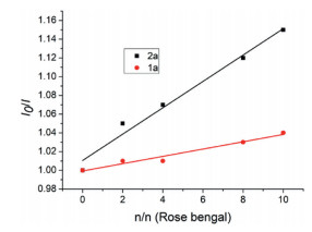 | Fig. 2. Stern–Volmer plot: fluorescence quenching of Rose bengal using N-(2-phenylallyl) benzamide 1a and t–butyl NHP ester 2a. | |