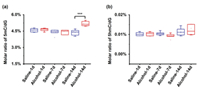 | Fig. 5. Content changes of 5mC (a) and 5hmC (b) in rat peripheral blood DNA upon alcohol exposure. ***, P < 0.001. | |