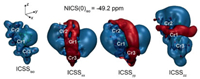 | Fig. 4. Magnetic responses of 1a showing spherical aromatic characters. Blue, red isosurfaces correspond to shielding and deshielding effects. Isovalue: 3.0. Level: B3LYP/def2-SVP | |