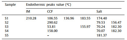 Table 3 Endothermic peaks of the salts and raw materials. |