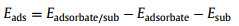where ECe1−xMxO2−δ, EO2 and ECe1−xMxO2 are the energy of the bulk in the presence of one oxygen vacancy, the energy of a gas-phase O2, and the bulk of surface Ce1-xMxO2, respectively. The definition shows that a positive value indicates endothermic formation and a negative value indicates exothermic formation. We use the same level to gain the formation energy of OVs in this work. The adsorption energy (Eads) is defined as [37-39]: