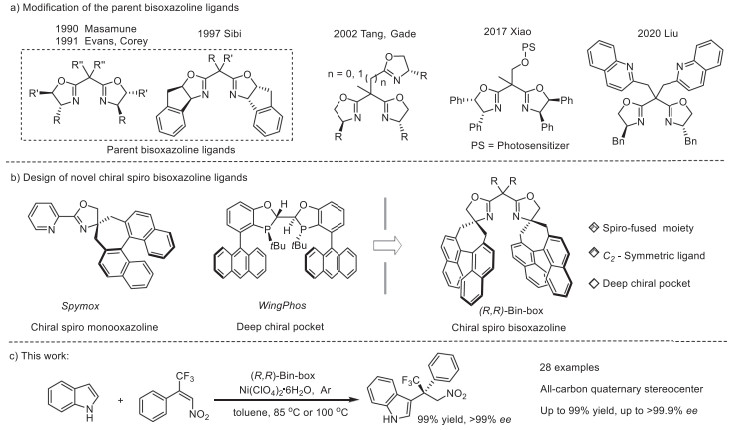 Bisoxazoline ligands (box ligands), as one class of the privileged ligands [1, 2], have made a great contribution to the progress of asymmetric catalysis over the past three decades [3-6]. In the course of developing chiral box ligands, modifying the parent bisoxazoline ligands [7-9] has emerged as an efficient approach to seek novel chiral ligands. By using this strategy, a series of representative chiral bisoxazoline ligands were successfully designed and applied in the asymmetric radical addition reactions [10], Friedel-Crafts reactions [11], cyclopropanation reactions [12], aerobic oxidation reactions [13], and radical coupling reactions (Fig. 1a) [14]. The success of these representative chiral bisoxazoline ligands benefited from the C2 symmetry of the ligands [15] and the good coordination ability of the bisoxazolines, providing valuable experience for the development of novel ligands.