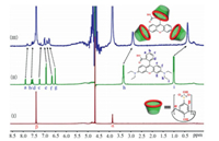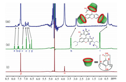 | Fig. 3. 1H NMR spectra (400 MHz, D2O) obtained from the titration of RB with SC4A: (Ⅰ) Pure SC4A; (Ⅱ) Neat RB; (Ⅲ) RB: SC4A = 1:3. | |