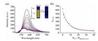 | Fig. 6. Titration fluorescence spectra of RB@(SC4A)3 (5 × 10−6 mol/L) with Fe3+ (0, 2.0, 4.0, … 40.0 equiv.). (a) Emission spectra; (b) change in fluorescence intensity with NFe3+/NRB@(SC4A)3. | |