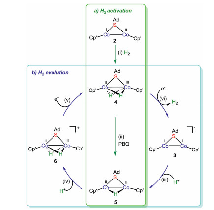 In our previous work, we designed and synthesized a series of new thiolate-bridged bimetallic complexes, which can mediate the chemical simulation of nitrogenase [22-24] or small molecule activation and catalytic conversion [25-28]. As an important supplement and extension of biomimetic diiron cooperative systems, we also constructed thiolate-bridged dicobalt functional platform, which exhibits versatile reactivities [15, 17, 18, 29, 30]. In this paper, the bulky monodentate adamantyl (Ad) thiolate was adopted as a bridging ligand for constructing new dicobalt functional systems. This choice is mainly based on the following two considerations: (1) its steric hindrance effect that is beneficial to the formation of the low-coordinate metal centres; (2) its electron-donating capacity that can stabilize the low-valent metal centres. Following this line, we successfully construct a series of novel low-valent thiolate-bridged dicobalt complexes. More importantly, this {Co(μ-SAd)Co} scaffold developed here can not only facilely mediate a homolytic cleavage of H2 across the short metal-metal bond to generate a scarce dihydride species, but can also promote H2 evolution following a stepwise process evidenced by the isolation of all potential key intermediates.