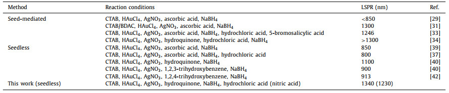 Table 1 Summaries of the synthesis methods of gold nanorods. |