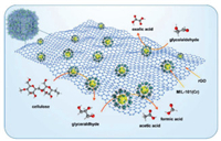 Generally, the conversion of cellulose into platform molecules is achieved by the oxidation of carbonhydrates in the presence of catalysts. Nanoparticle catalyst, solid acid catalyst and alkali metal catalyst have shown remarkable effect [4-6]. For example, with the solid heteropoly acid Cs2.5H0.5PW12O40 catalyst, fructose could produces HMF with high efficiency in a two-phase system [5]. The Ru-based catalyst could convert the cellobiose and cellulose to a hexahydric alcohol with high selectivity [6]. The composite catalyst of Ir/SiO2 and zeolite can directly convert microcrystalline cellulose into n-butane [7]. However, these reactions are generally heterogeneously catalyzed. And there are few studies on the efficient catalytic degradation of cellulose to small molecule acids. The presence of repeated 1,4-β glycosidic bonds and complex hydrogen bonding networks in cellulose make them very difficult to dissolve, thus reducing the efficiency of heterogeneous catalysis. Recently, studies have shown that cellulose can be dissolved in ionic liquid or alkaline aqueous solutions, and then can be homogeneously degraded to HMF or small molecular acids, which depends on the catalyst system [8]. But the high conversion efficiency and selectivity of product should be improved.