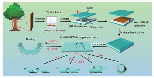 | Scheme 1. Schematic illustration of preparation of wood-PNIPAM composite hydrogel actuator. | |