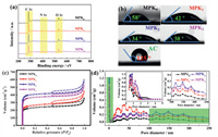| Fig. 3. XPS spectra of MPKx (a). Wetting angles of water droplet on the surface of MPKx and activated carbon (AC) (b). N2 adsorption-desorption isotherms (c) and pore size distribution (d) of MPKx. | |