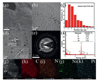 | Fig. 2. (a) SEM images of PtNi/GA-N catalyst. (b) TEM image of PtNi/GA-N catalyst. (c) Particle size distribution histogram of PtNi/GA-N catalyst. High-resolution TEM (d), SAED (e) and EDS (f) of PtNi/GA-N catalyst. (g) STEM and elemental mapping images of the PtNi/GA-N catalyst, (h) C, (i) N, (j) Ni, (k) Pt. | |
