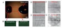 | Fig. 2. (A) Hydrophilic and hydrophobic characterization of modified chip. (B) Fluorescence characterization of hydrophobic regions. (C) Fluorescence characterization of hydrophilic regions. (D) Image without droplets generated on unmodified chip. (E) Image with droplets generated on modification chip. (F) Image of preparation of one core microcapsules. (G) Image of preparation of two cores microcapsules; Scale bar: 1 mm. | |