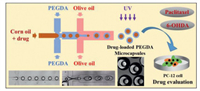 | Scheme 1. Schematic diagram of preparation of drug-loaded PEGDA microcapsules using droplet-based microchip and its application in drug evaluation of PC12 cells. | |