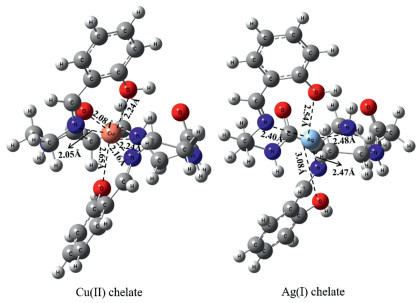 | Fig. 3. The optimized configuration of Cu(Ⅱ) and Ag(Ⅰ) chelate. | |