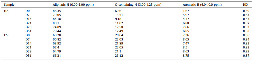Table 1 Chemical structures of compost-derived HA and FA during composting. |