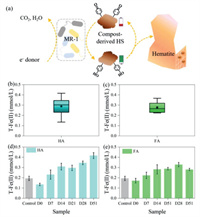 | Fig. 2. (a) The schematic illustration of hematite bioreduction by compost-derived HS. The distribution of total HCl-Fe(Ⅱ) of compost-derived HA (b) and FA (c) in hematite reduction. The total amount of Fe(Ⅱ) in compost-derived HA (d) and FA (e) mediated hematite bioreduction. ★ Represents the average value. | |
