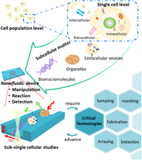 | Fig. 2. Conceptual drawing of sub-single cellular studies enabled by a nanofluidic strategy. | |