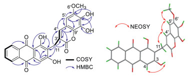 | Fig. 2. Key 1H-1H COSY, HMBC, and NOESY correlations of 1. | |