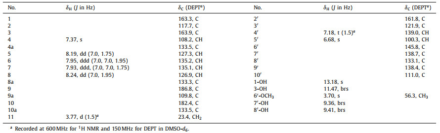Table 1 1H (500 MHz) and 13C (125 MHz) NMR Data for 1 in DMSO-d6 (δ in ppm, J in Hz). |