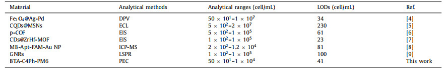 Table 1 Comparison of analytical performance between the proposed PEC method and other MCF-7 sensors. |