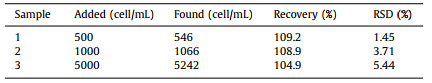 Table 2 Determination of MCF-7 in whole blood using the PEC assay. |