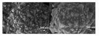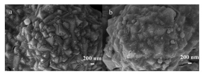 | Fig. 1. SEM images of the Co@ZIF-67@PDA (a) and the Co-NC (b) coatings. | |