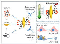 | Fig. 6. Schematic diagram of the proposed AuNBPs-PNMV@Apt for measurement of the intracellular temperature during the tumor cells photothermal therapy. | |