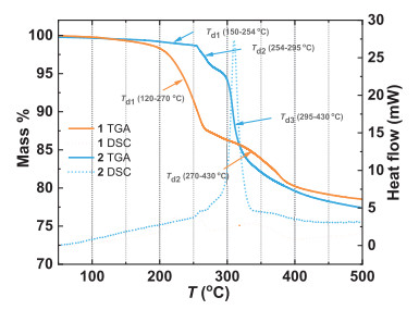 | Fig. 2. Thermal stability of 1 and 2 under Ar atmosphere. | |