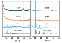 | Fig. 3. PXRD diffractograms of 1, 2 and the related thermal treatment samples. | |