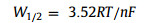 where W1/2 is the half-peak width; R is ideal gas constant; T is absolute temperature; F is Faraday constant; and n is the number of electrons transferred.