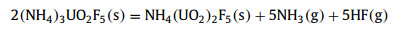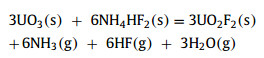 Firstly, the possibility of the formation of UO2F2 from UO3 was estimated using the thermodynamic analysis of related fluorination reactions. UO3 can react with NH4HF2 or HF obtained from the decomposition of NH4HF2 to form UO2F2, the following reactions may be involved as follows: