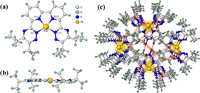 | Fig. 5. Structure of the Pd(iPr-BTBP)2+ moiety in the singlecrystal of [Pd(iPr-BTBP)]2(NO3)4(H2O)2(CH3CN). (a) A front view, (b) a top view, (c) hydrogen bonding interactions in the structure. Selected bond lengths (Å): Pd2-N11 2.032(6), Pd2-N12 1.918(5), Pd2-N13 1.930(5), Pd2-N15 2.028(6). | |