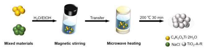 | Scheme 1. Schematic illustration of the synthesis processes of TiO2-A-R. | |