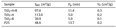 Table 1 BET properties of TiO2-A-R, TiO2-A, TiO2-R and P25 photocatalysts. |