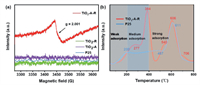 | Fig. 4. (a) EPR spectra of TiO2-A-R, TiO2-R, TiO2-A and P25 samples. (b) NH3-TPD analysis over TiO2-A-R and P25 sample. | |