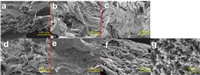 | Fig. 4. SEM micrographs of the inner char residues of 3ACP-EP epoxy thermosets after UL-94 test, (a) 3ACP-EP-05, (b) 3ACP-EP-10, (c) 3ACP-EP-15, (d) 3ACP-EP-20, (e) 3ACP-EP-25 and (f, g) the surface char residues of 3ACP-EP-25. | |