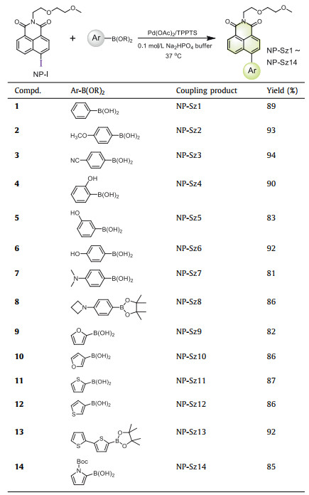 Table 2 Synthesis of 4-aryl-1, 8-naphthalimides with Suzuki-Miyaura reaction. |
