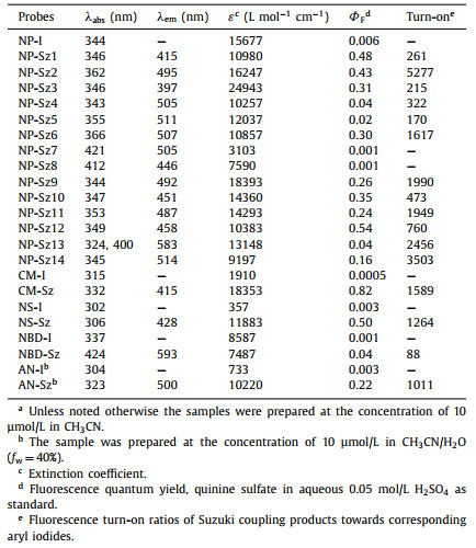 Table 3 Photophysical properties of ICT-based fluorogenic probes.a |