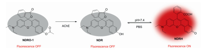 | Scheme 2. Proposed reaction mechanism of NDRO-1 with AChE. | |