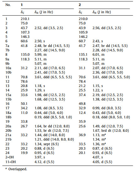 Table 1 1H (500 MHz) and 13C (125 MHz) NMR spectroscopic data for compounds 1 and 2 in acetone-d6. |