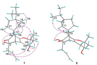 | Fig. 3. Selected NOEs/ROESY correlations of compounds 1 and 2. | |