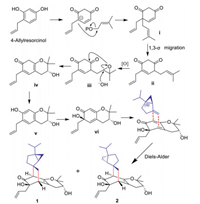 | Scheme 1. Plausible biogenetic pathway of 1 and 2. | |