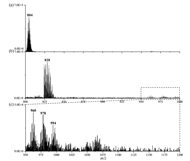 | Fig. 4. The observed MS data before (a) and after (b) adding phosphate, (c) the MS data between m/z 950–1000. | |