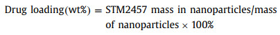 The synthesis procedure of STM@8P4 NPs was conducted by nanoprecipitation method. The formation of STM2457 has been detailed before [11]. To prepare NPs, 8P4 and STM2457 were dissolved in dimethyl sulfoxide and DSPE-PEG 2000, then we added the mixture drop into ultrapure water. Dynamic light scattering (DLS, Malvern Zetasizer Nano-ZS90) was applied for particle size measuring. In order to evaluate the drug loading and encapsulation rate of STM@8P4 NPs, the NPs were dispersed and diluted in DMSO. The concentration of STM2457 in NPs was calculated based on fluorescence spectrophotometry (Eqs. 2 and 3).
