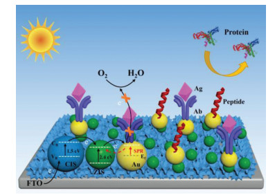 Sensitive and precise probing of disease-related biomarkers with low abundances have shown great prospect especially for early diagnosis and timely treatment of serious illnesses or cancers [1-3]. As a result, constant efforts are now still being made to develop advanced biosensing technics. Among the reported biosensing community, photoelectrochemical (PEC) biosensing has shown its obvious merits such as simple device, easy operation, low price, high sensibility, and weak background signal [4-7], which bestows real-time, fast and high-throughput test upon this sensing technic. Since its inception, PEC immunosensing as a potential evolving direction has been actively pursued by the researchers [8-13]. The explored PEC immunosensors alternatively can be divided into photoanode- and photocathode-based types in terms of the nature of the photoelectrodes [14, 15]. Photocathode-based immunosensors have been verified to have better anti-interference abilities to incidental reductive agents in biological samples [16-19], showing its bright future in real applications. Yet, the current outputs of the photocathodes are generally much lower than that of the photoanodes, bringing about limited sensitivity of the photocathode-based immunosensors.