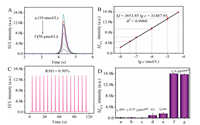 Furthermore, compared with curves a and b in Fig. 3A, both CDs/ZIF-8/GCE and CDs/GCE had a weak response in N2-saturated PBS (Fig. 3A, curves e and f), thus confirming dissolved O2 performed as a coreactant. It has been reported that dissolved O2, as endogenous coreactant, generates a variety of ROSs (O21, •OH and O2•−) to react with the active intermediates of luminophor [15]. Consequently, different capture agents (DMSO absorb •OH and Na2SO3 assimilate O2•−, respectively) were added to the PBS to further explore the process of ROSs participating directly in ECL emission in Fig. 3D. The ECL response was similar (curve b) with CDs/GCE in PBS (curve a) when DMSO was added to PBS, demonstrating that •OH was not closely related to ECL reaction. It could be seen from curve c that the signal was reduced obviously in the existence of Na2SO3. Consequently, O2•− was presumed to be involved directly in ECL emission (specific reaction mechanism could be seen from Scheme 1C).