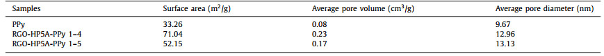 Table 1 Physical properties deduced from N2 adsorption-desorption at 77 K on PPy, RGO-HP5A-PPy 1–4 and RGO-HP5A-PPy 1–5. |