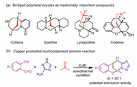 | Scheme 1. (a) Examples of bridged polyheterocycles as medicinally important compounds; (b) Copper-promoted stereoselective multicomponent domino strategy employed in this work to access bridged polyheterocycles. | |