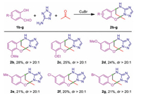 At this stage, our results demonstrated that a domino diastereoselective process could be achieved using cheap and readily available chemicals as starting materials, and a series of triazole fused tetrahydroazolopyrimidines bearing two stereogenic centers could be obtained.