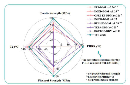 | Fig. 10. Performance comparison of mechanical properties, Tg and PHRR (%) data for different bio-based epoxy resins cured by DDM. | |